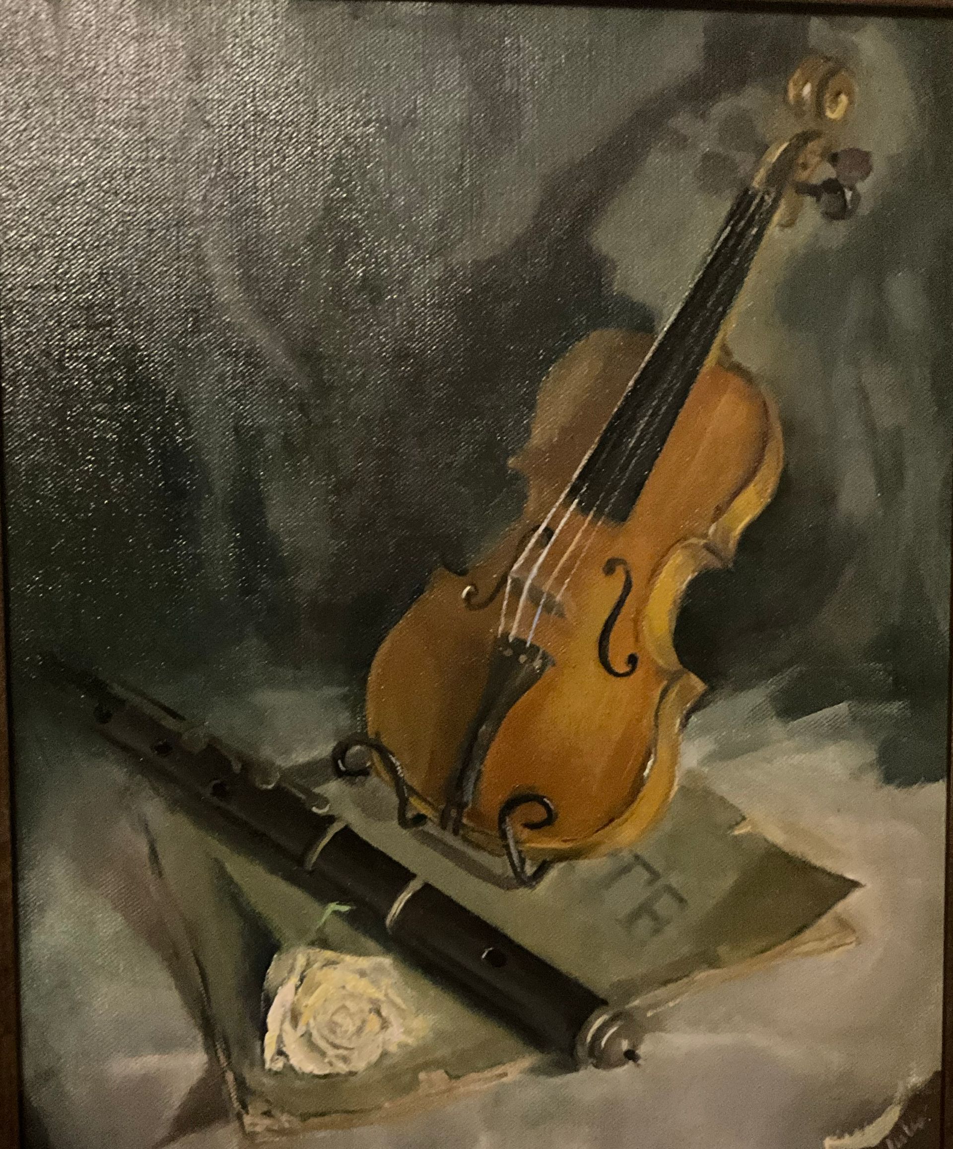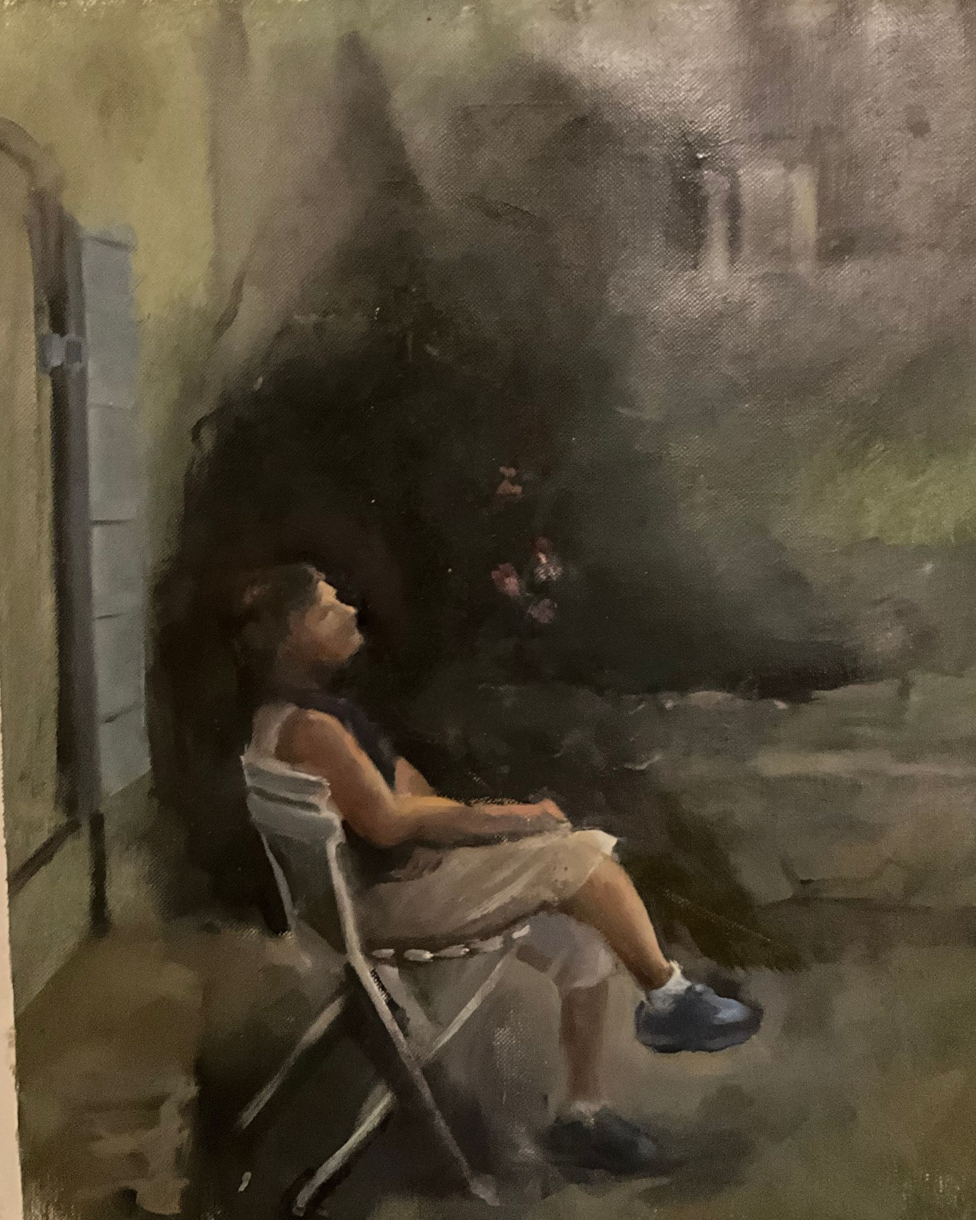 While she paints still life, landscapes and figurative themes she is particularly interested in portraits.